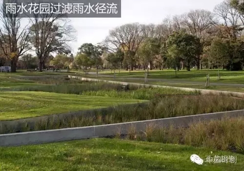 而廣義的雨水花園則可囊括具有調(diào)蓄和凈化雨水徑流能力的下沉式綠化設(shè)施。如下圖中的墨爾本愛丁堡雨水花園,在調(diào)蓄的同時(shí)運(yùn)用生物凈化手段對(duì)徑流進(jìn)行階梯式處理,為其所在公園提供了大量灌溉水。