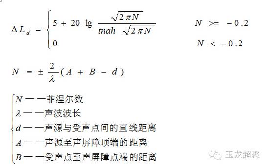 對(duì)于一個(gè)無限長(zhǎng)聲屏障、點(diǎn)聲源的繞射聲衰減為: